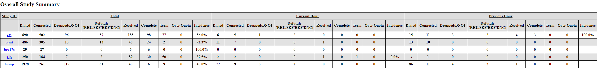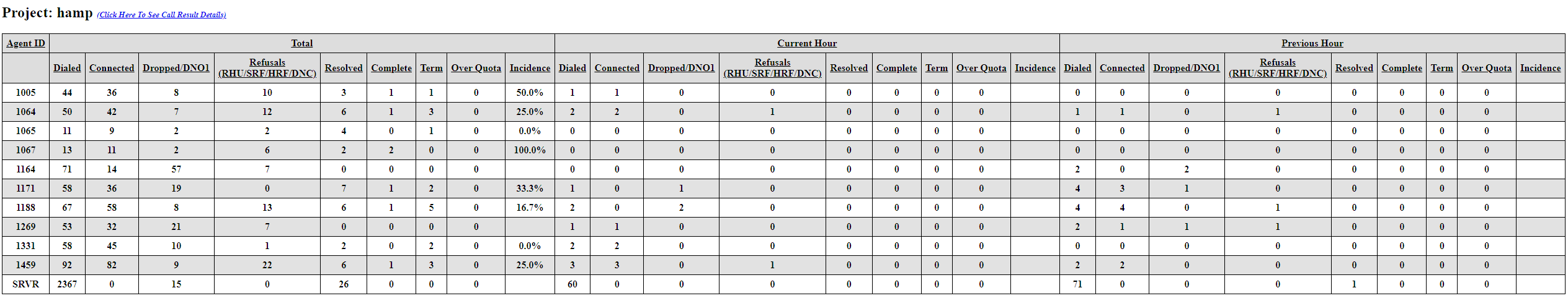 - Because the data refreshes every 15 seconds, numbers will shift during active calling hours -- especially in the Current Hour columns.
