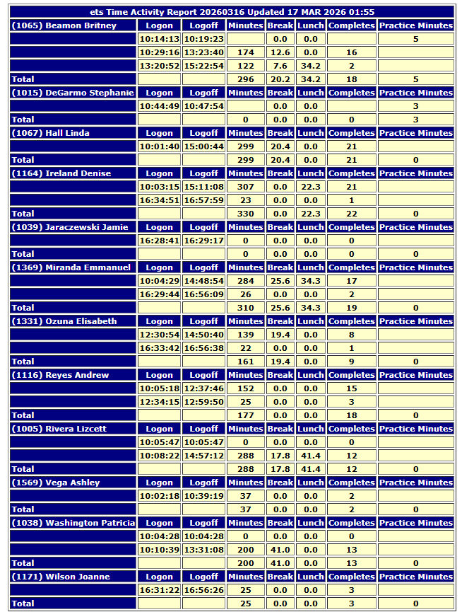 This is important to keep in mind if you use the browser's Find (Ctrl+F) to search for a specific agent ID and do not get a match. The report displays station numbers, not agent IDs.