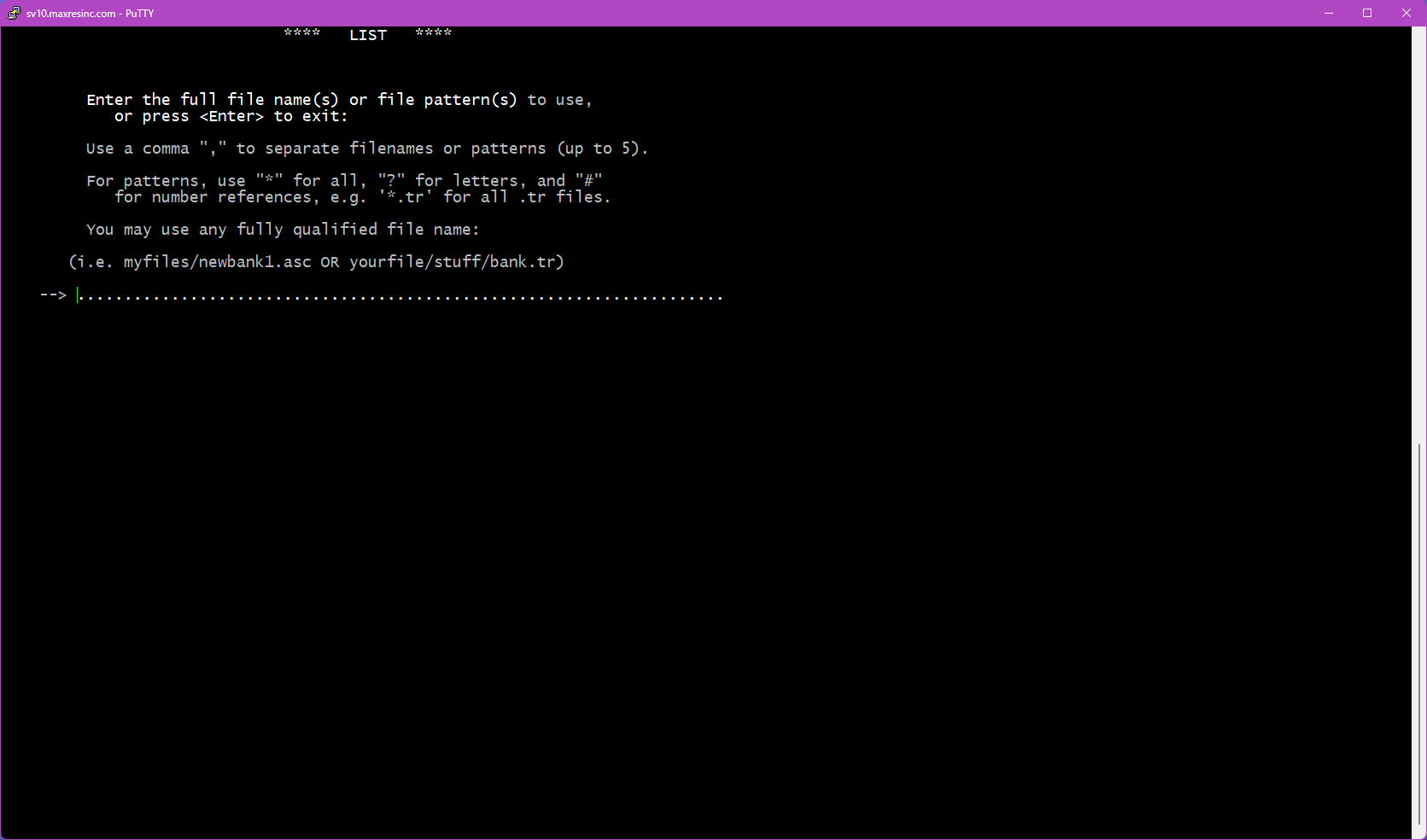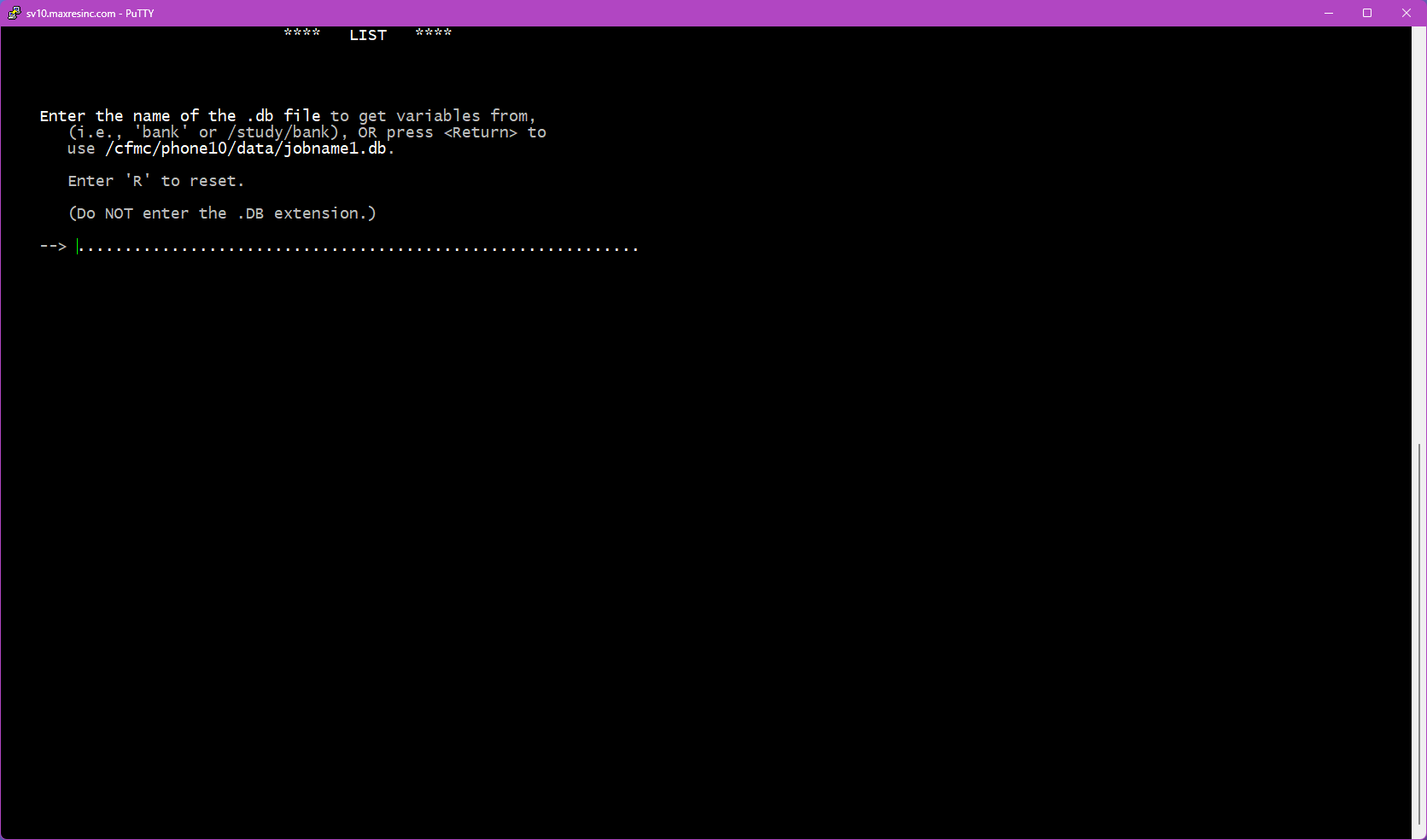 To launch LIST, open a PuTTY session, navigate to the appropriate directory, and type: